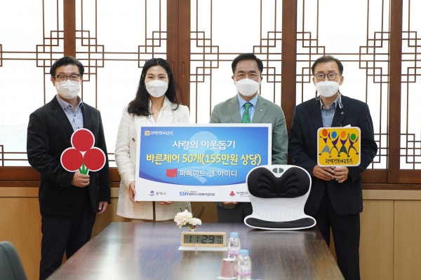 [충청뉴스큐] 퍼메이드 앤 아이디에서는 최근 평택시청 대외협력실에서 평택행복나눔본부에 바른체어 50개를 전달했다.