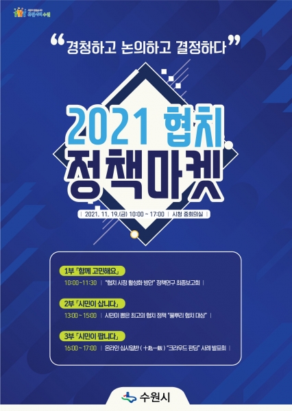 [충청뉴스큐] 수원시가 민선 5~7기 수원시 협치 정책을 되짚어보고 우수 협치 정책을 선정하는 ‘2021 협치 정책 마켓’을 개최한다.