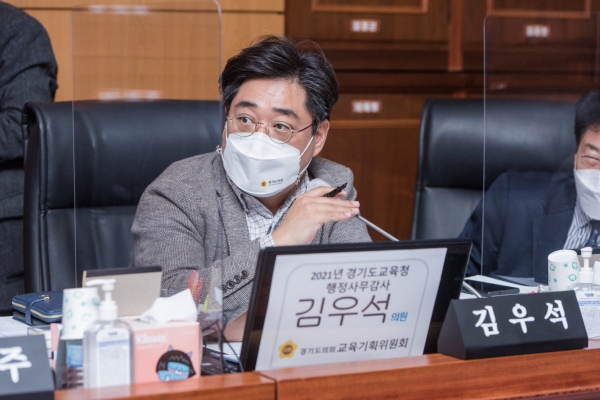 [충청뉴스큐] 경기도의회 교육위원회 김우석 의원은 지난 11월 11일 경기도의회 교육기획위원회 회의실에서 진행된 교육정책국·경기도교육연수원·경기도학생교육원·경기도평화교육연수원·경기도혁신교육연수원 등을 대상으로 실시한 2021년 행정사무감사에서 유아·초등 저학년 담당교사의 투명한 립뷰 마스크 착용 필요성을 제기했다.