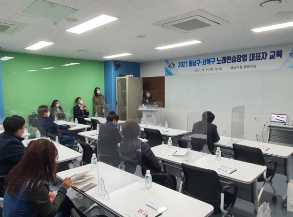 동남구 및 서북구청 관계자는 “코로나19 장기화로 어려운 상황 속에서도 이번 교육에 참석해 주신 대표자분들께 감사드린다”며 “앞으로도 안전하고 건전한 노래연습장 문화 조성에 적극적으로 동참해줄 것을 당부드린다”고 말했다.