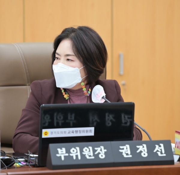 [충청뉴스큐] 경기도의회 교육행정위원회 권정선 부위원장은 12일 경기도교육청 총무과·교육협력국·율곡교육연수원에 대한 2021년 행정사무 감사에서 ‘학교급식법’ 개정에 따른 사립유치원 급식시설 및 인력 지원 대책, 조리종사자의 열악한 정원 배정 개선, 조리종사자 인력 대체풀 운영 등 학교급식과 관련한 현안 문제에 대한 대책 마련을 촉구했다.