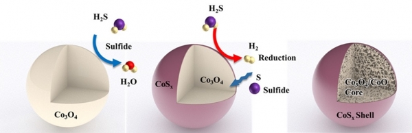 이러한 문제점을 해결하기 위해 방진호 교수팀은 저가의 비귀금속 벌크 코발트 산화물 oxide: Co3O4)을 황화수소로 채워진 환경에서 10분간 열처리함으로써 나노 구조화와 표면 활성을 극대화할 수 있는 혁신적인 촉매 공정을 개발했다.