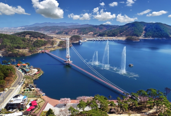 예당호 출렁다리는 105억원을 투입해 주탑 높이 64m, 길이 402m 규모로 2019년에 개장해 지금까지 505만 여명의 방문객이 다녀간 예산군의 관광 랜드마크다.