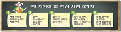군 관계자는 “작물별로 등록된 농약만 사용하고 농약 사용시기, 횟수, 용량, 희석배수를 준수하는 등 농약 안전사용 기준을 철저히 지켜 PLS 제도 시행에 따른 불이익을 받지 않도록 농약 사용에 각별히 주의해 주시기 바란다”고 당부했다.
