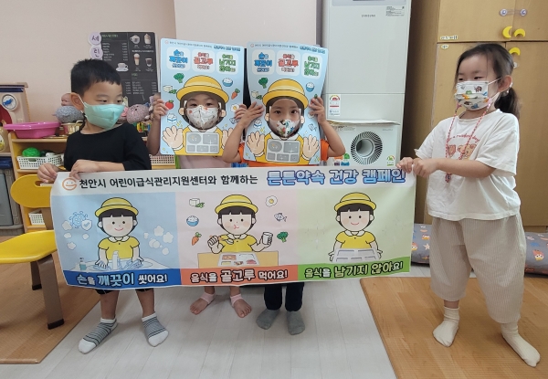 [충청뉴스큐] 천안시 어린이급식관리지원센터는 지난 9월 27일부터 어린이집, 유치원 어린이 1만9000여명을 대상으로 올바른 식습관 형성을 위한 ‘튼튼약속 건강 캠페인’을 추진하고 있다.