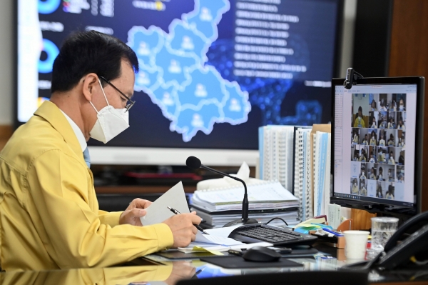 [충청뉴스큐] 음성군이 8일 조병옥 음성군수를 비롯한 부서장급 이상 간부들이 참석한 가운데 영상회의로 주간업무 보고회를 개최하고 코로나19 및 AI 일일 종합상황 및 주간업무 등을 논의하고 공유했다.