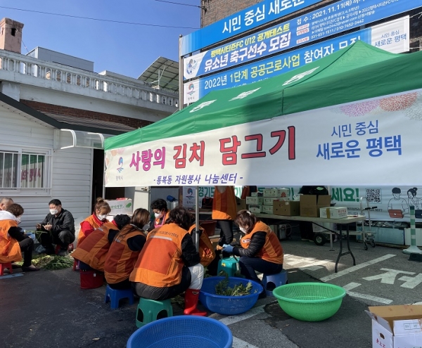 [충청뉴스큐] 평택시 통복동 자원봉사 나눔센터는 지난 12일 통복동 행정복지센터에서‘사랑의 계절김치 담그기’봉사를 진행했다.
