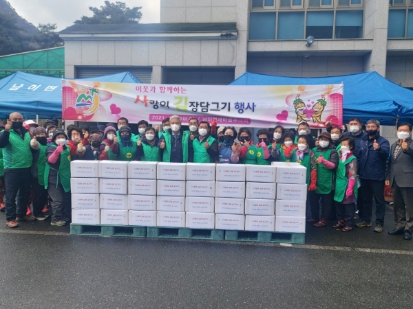 남이면남녀새마을지도자협의회는 회원 50여명이 지난 11일 김장을 담가 소외계층 100여 가구에 전했다.