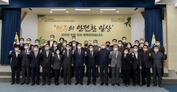 제주특별자치도는 15일 오전 10시 제주도청 4층 탐라홀에서 ‘코로나19 일상회복 범도민 지원위원회 출범식’을 개최했다.