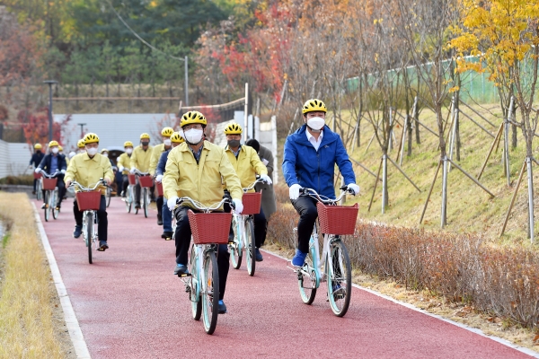 이날 현장점검에는 조석환 수원시의회 의장, 김정렬 문화체육교육위원장, 박태원 의원, 염태영 수원시장, 유문종 제2부시장 및 관계자가 함께했으며 협궤터널을 시작으로 세류삼각선까지 자전거를 타고 현장을 누비며 협궤터널 내부, 공원화조성, 보행입체시설 등을 점검하고 민원현장을 확인했다.
