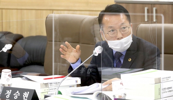 [충청뉴스큐] 경기도의회 운영위원장 정승현 의원은 15일 경기도 농업기술원에서 진행된 경기도 농업기술원 행정사무감사에서 지속가능한 농업환경 조성을 위해 농업환경자원정보 현황 파악·관리 필요성 등을 강조하며 농정현안에 관한 질의를 실시했다.