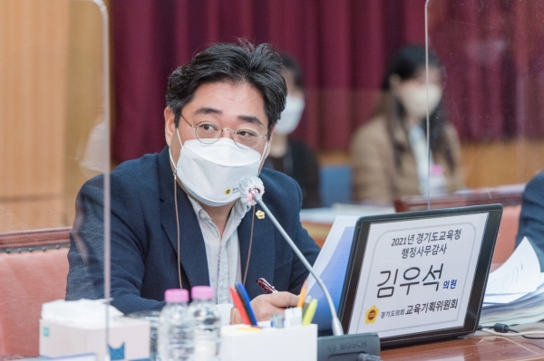 [충청뉴스큐] 경기도의회 교육위원회 김우석 의원은 11월 15일 경기도교육청 남부청사에서 진행된 2021년 경기도교육청 총괄 행정사무감사에서 스마트교육 활성화를 위해 이용자 교육 및 전자도서 등 소프트웨어 구입을 확대해야 한다고 주장했다.