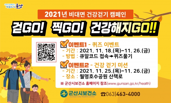 [충청뉴스큐] 군산시 보건소는 단계적 일상회복에 맞도록 비대면 건강 걷기 대회를 실시한다고 16일 밝혔다.