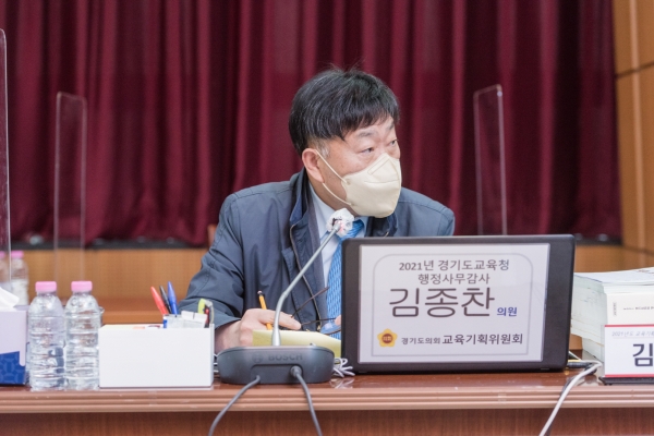 [충청뉴스큐] 경기도의회 교육기획위원회 김종찬 의원은 지난 11월 15일 경기도의회 제356회 정례회 중 경기도교육청 남부청사에서 진행된 경기도교육청에 대한 총괄 행정사무감사에서 교육공무직 처우개선 및 공공기관 개방 방안을 마련해 달라고 요청했다.