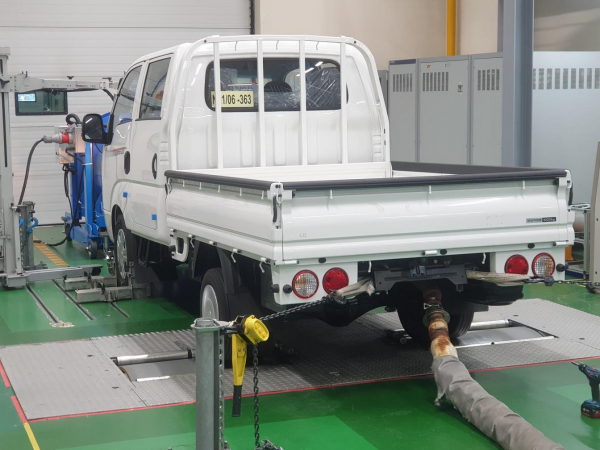 실제 운전 후 배출되는 대기오염물질 분석을 위해 이들 2개의 시료를 배기량 2500cc급 경유화물차의 요소수 탱크에 주입해 주행 후 배출가스를 분석했다.
