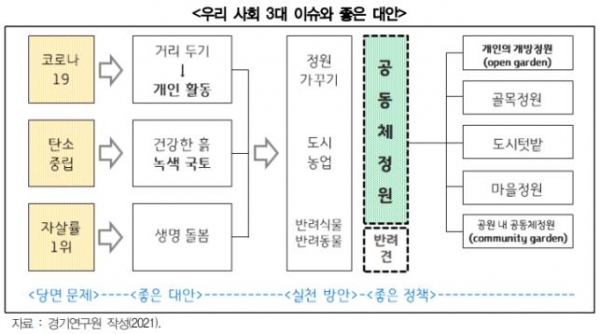 연구원은 이러한 정원문화가 코로나19, 탄소중립, 심각한 자살률 등 현안 해결에 좋은 대안이라고 주장했다.