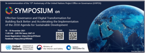 올해 5번째를 맞는 이번 심포지엄은 “더 나은 재건과 지속가능 개발목표이행 가속화를 위한 효과적인 거버넌스 및 디지털 전환”의 주제로 11월 18일까지 온라인으로 개최한다.