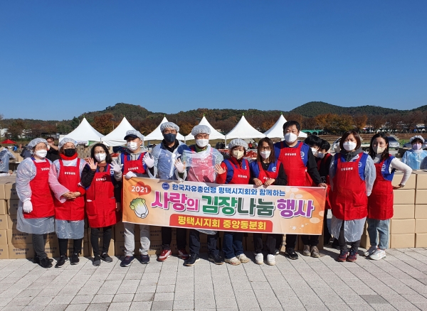 [충청뉴스큐] 한국자유총연맹 평택시지회 중앙동 분회는 지난 13일 중앙동 관내 저소득 가정 및 한부모 가정 등 20가구에 김장김치를 전달하는 사랑의 김장나눔 행사를 가졌다.