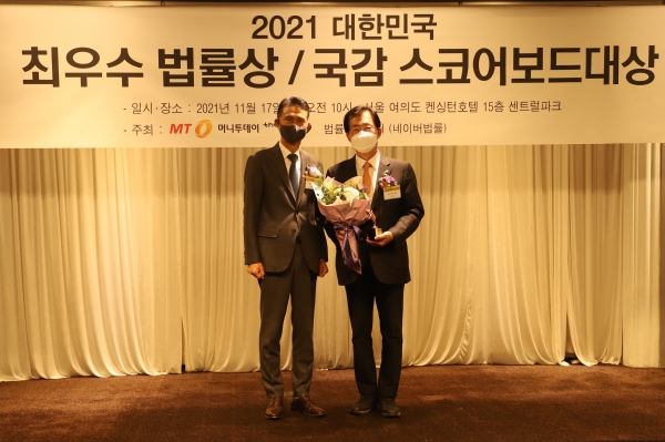 [충청뉴스큐] 이만희 국회의원이 17일 서울 여의도 켄싱턴호텔에서 머니투데이 더300과 법률앤미디어가 선정한 ‘2021 국정감사 스코어보드 대상’을 수상했다.