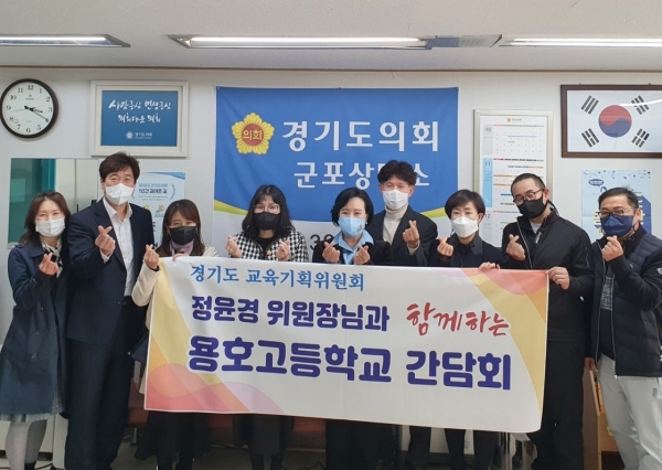 [충청뉴스큐] 경기도의회 교육기획위원회 정윤경 위원장은 경기도의회 군포상담소에서 용호고등학교 학부모회장 및 임원진과 운영위원장, 교감 등 관계자들과 용호고등학교 환경개선사업 예산 관련 정담회를 가졌다.