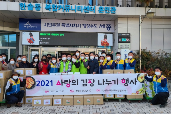 [충청뉴스큐] 세종특별자치시 한솔동행정복지센터가 한솔동지역사회보장협의체 주관으로 지난 17일 ‘사랑의 김장 나누기 행사’를 개최했다고 밝혔다.