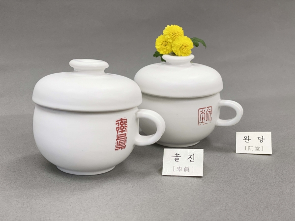 낙관 찻잔은 조선시대 백자를 연상하는 흰색 바탕의 도자기에 빨간색 글씨로 쓴 ‘완당’과 ‘솔진’이 담겨 있으며 두 차례에 걸쳐 구운 뒤 전사지를 붙여 한 번 더 굽는 등 총 3번을 구워 단단하고 완성도가 높은 것이 특징이다.