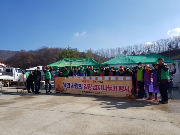 [충청뉴스큐] 천안시 북면은 새마을 남녀협의회와 행정복지센터 직원 40명이 지난 17일 행정복지센터 뒤뜰에서 ‘사랑의 김장김치’ 나눔 행사를 진행했다고 밝혔다.