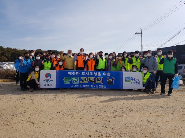 이번 대청소에는 고덕면 9개 단체협의회 회원과 관내 입주 기업인 삼성물산 자원봉사회원 및 고덕면 직원 60여명이 쓰레기 다발생지역인 방축1교차로에서 고덕국제신도시 방면의 대로변 갓길 및 인도 약 1㎞구간에 적치되어 있는 쓰레기 약 3톤을 수거했다.