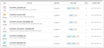 이번에 개방되는 데이터는 부산시 및 산하기관에서 실시하는 교양강좌 및 탐방·체험 정보, 환경방사선 정보, 해수욕장수질 정보, 하천수위 정보, 공공기관일자리 정보, 장애인 전동보장구 충전기 위치 등으로 시민의 삶과 밀접한 12개 분야 53종이다.
