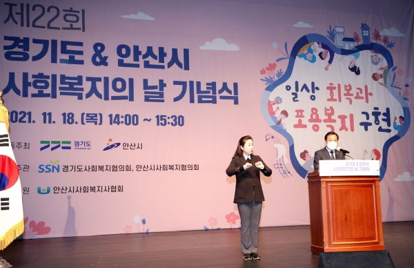 경기도와 안산시가 주최하고 경기도·안산시 사회복지협의회가 주관한 이날 기념식에는 오병권 경기도지사 권한대행, 윤화섭 안산시장, 강기태 경기도 및 안산시 사회복지협의회장 등 90여명이 참석했다.