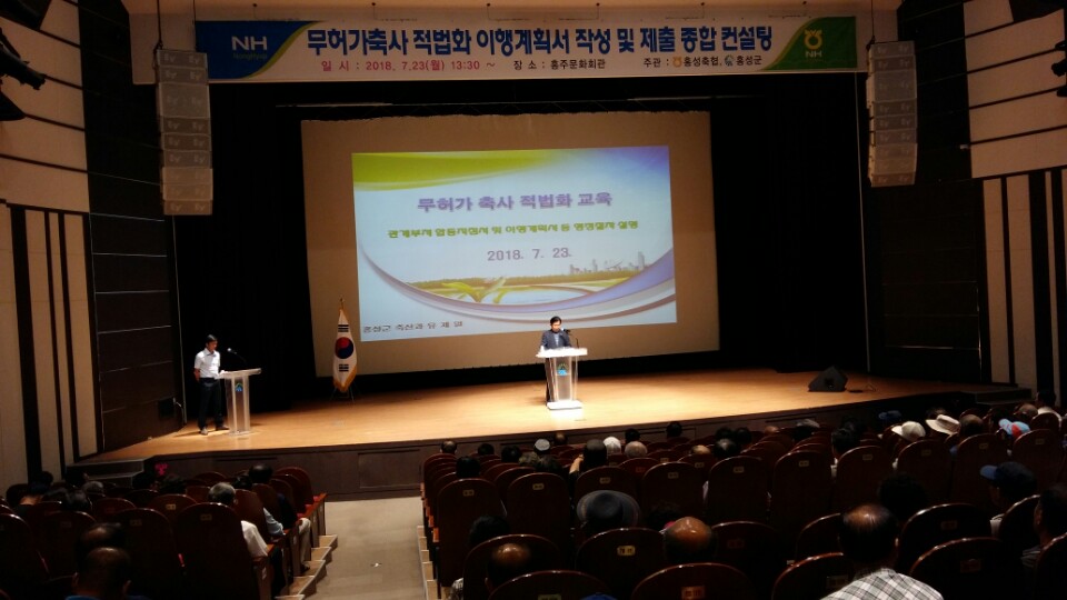 [충청뉴스큐]홍성군은 지난 23일 홍주문화회관에서 축산농가 500여 명이 참석한 가운데 관계부처 합동지침서 및 이행계획서 등 행정절차에 대하여 교육을 실시했다.