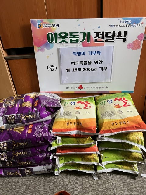 기부자는 한사코 이름이 알려지는 것을 원치 않는다며 익명으로 처리해 줄 것을 요청했으며 협의체는 기부자의 뜻을 존중해 지역 내 저소득층 15세대를 선정해 기부 물품을 전달할 예정이다.