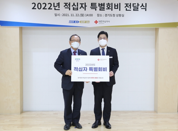 [충청뉴스큐] 오병권 경기도지사 권한대행은 22일 도청 상황실에서 ‘2022년 대한적십자사 특별회비 전달식’을 갖고 윤신일 대한적십자사 경기도지사 회장에게 특별회비 1천만원을 전달했다.