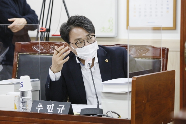 [충청뉴스큐] 경기도의회 건설교통위원회 추민규 의원은 경기도 건설국 2021년도 제4회 추가경정예산안 및 2022년도 예산안 심의에서 교통약자 보호구역 확대와 사고위험 지역 내의 LED 설치 및 음성신호기 확대를 주문했다.