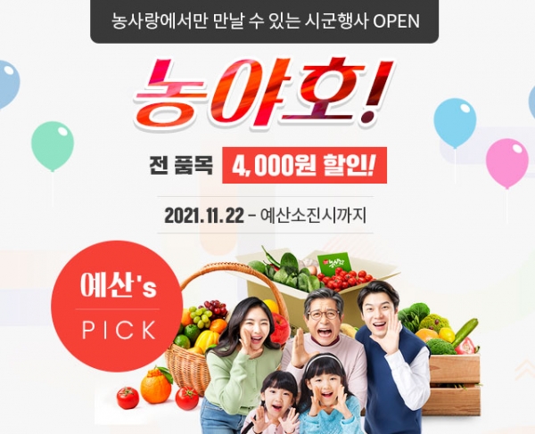 군은 농사랑 예산군 브랜드관에 입점한 관내 51개 농가 제품에 대해 판매품목 택배비를 정액 지원하며 제철농산물을 연계한 할인 행사를 진행한다.