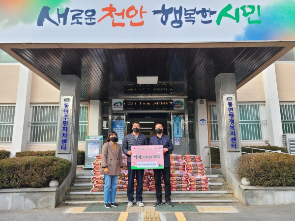 [충청뉴스큐] 천안시 동면 이종현 주민자치위원은 지난 22일 관내 어려운 이웃을 위해 쌀 100포를 동면에 기부했다.