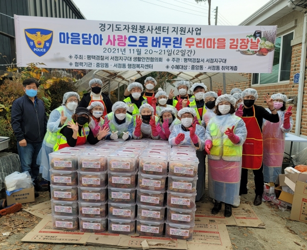 [충청뉴스큐] 평택경찰서 서정지구대 생활안전협의회는 지난 20일부터 21일 이틀에 걸쳐 마음담아 사랑으로 버무린 김장나눔 행사를 가졌다.