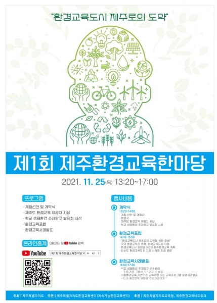제주도와 도 교육청, 제주환경교육네트워크, 도내 환경교육단체 관계자, 학생 등이 참여할 예정이며 코로나19 확산 예방을 위해 도환경교육센터 공식 유튜브 채널을 통해 온라인 실시간 중계가 이뤄진다.