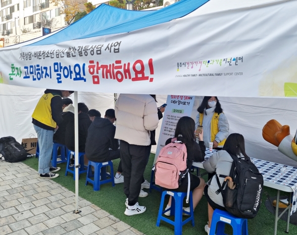 [충청뉴스큐] 충주시건강가정다문화가족지원센터는 성서동 차 없는 거리에서 ‘비혼 청소년 상담사업’에 대한 거리 홍보를 진행했다.