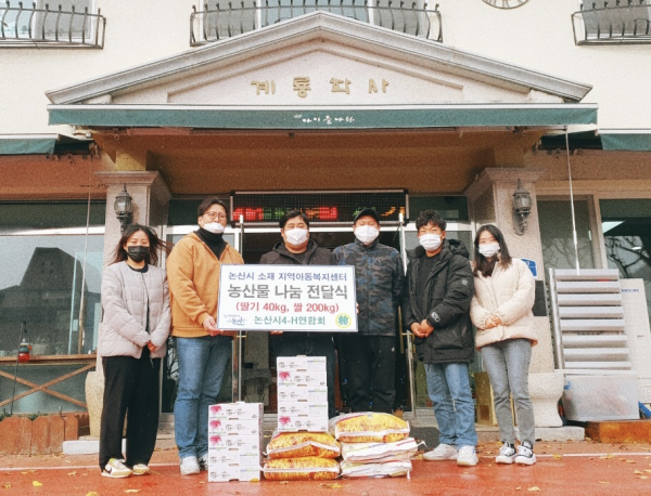 [충청뉴스큐] 논산시농업기술센터는 지난 22일 논산시 4-H연합회에서 연말을 맞아 회원들이 직접 재배한 농산물을 애육원, 계룡학사 등 관내 아동복지센터에 기부했다고 전했다.