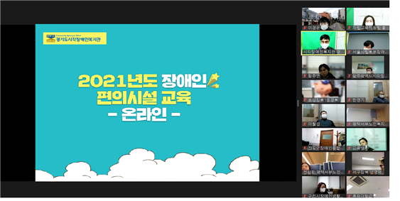 [충청뉴스큐] 경기도시각장애인복지관에서는 11월 24일 오후 오후 1시 30분부터 오후 5시 30분까지 온라인으로 2021년 장애인 편의시설 교육을 실시했다.