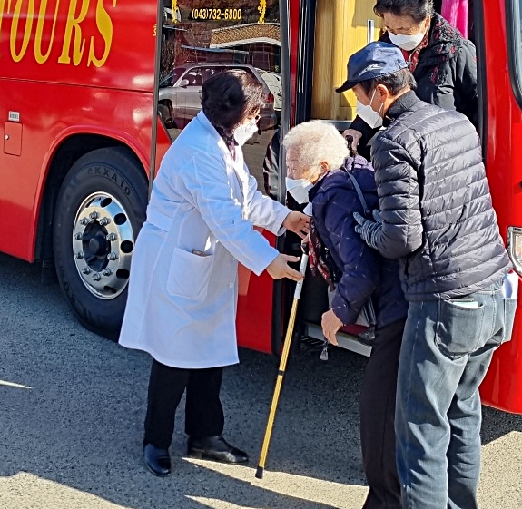옥천군은 1차, 2차 접종과 같이 추가접종 동의를 받아 45인승 전세버스 7대를 운행하며 안전하게 어르신 수송에 나섰고 버스에는 읍면 인솔 공무원과 보건인력이 탑승해 접종과 승하차 및 귀가를 도왔고 2,072명의 어르신이 7일간 접종센터에서 추가접종을 완료했다.