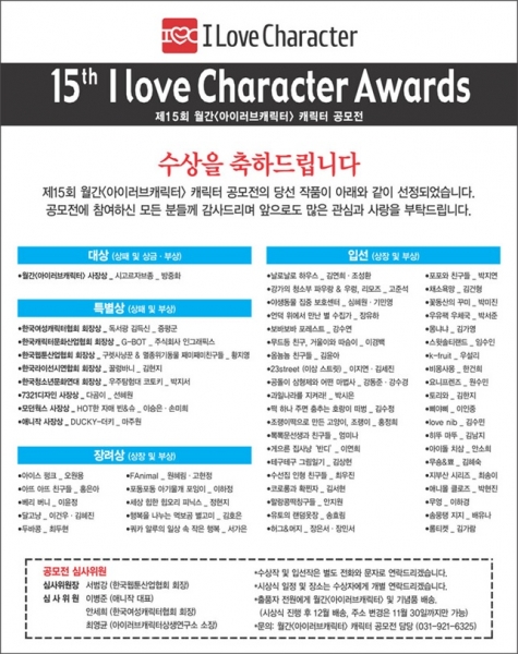 월간 ‘아이러브캐릭터’는 국내 유일의 캐릭터 전문 월간지로 2007년부터 매년 캐릭터 공모전을 개최해 오고 있다.