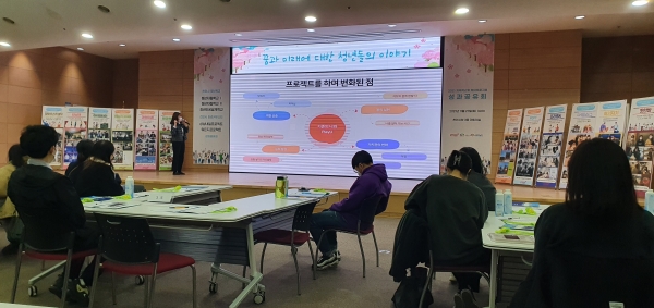 이번 행사는 ‘꿈과 미래에 대한 청년들의 이야기’라는 주제로 청년 커뮤니티 사업에 참여한 12개 팀, 청년 44명의 활동을 담은 영상 상영과 결과 공유, 수료증 수여 등의 내용으로 진행됐다.