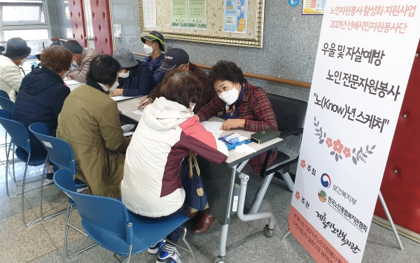 복지관에 따르면 선배시민자원봉사단은 우울·자살분야, 상담·교육분야, 봉사·후원분야 3개 봉사단이 활동했으며 그 중 지역 노인의 우울 및 자살예방을 위한 ‘노년스케치 봉사단’은 자원봉사자교육, 우울·자살예방교육 등 전문교육 이수 후 활동을 실시했다.