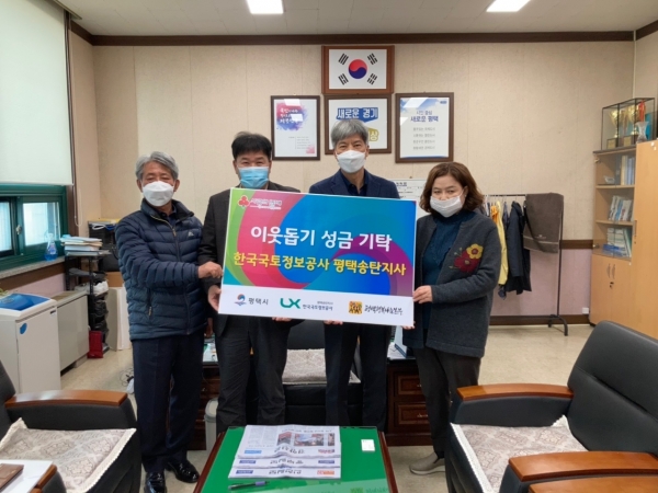 [충청뉴스큐] 한국국토정보공사 평택송탄지사는 지난 26일 평택시 중앙동행정복지센터를 방문해 관내 어려운 이웃을 위해 써달라며 현금 300만원을 기탁했다.