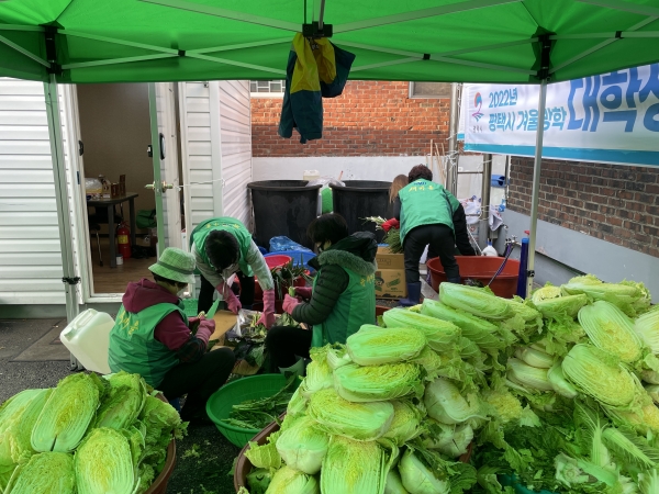 통복동 새마을 남·녀지도자 20여명은 이른 아침부터 통복동행정복지센터에 모여, 손수 배추 200포기와 무 등을 손질하며 김장 준비를 했고 곰탕도 함께 전달하기 위해 이틀간 사골 뼈를 정성들여 끓였다.
