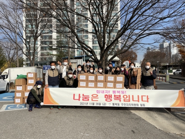 구문환 통복동 주민자치위원장은 “코로나19 변이 바이러스 등으로 추워지는 계절 소외된 이웃들을 위한 봉사활동이 줄어들까 걱정스럽다”며 “통복동 주민자치위원회는 항상 행복한 통복동을 만들기와 이웃 사랑 실천을 위해 최선을 다하겠다”고 말했다.