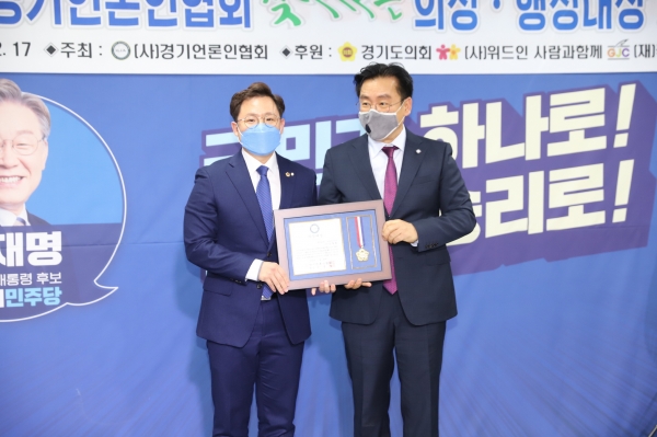 경기언론인협회 의정대상은 의정활동을 통해 도민의 권익증진과 지역사회 발전, 언론의 활성화에 기여한 공로가 큰 의원을 대상으로 수여하는 상이다.