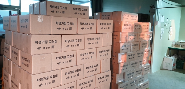 [충청뉴스큐] 예산군은 상반기 코로나19로 부분 등교한 관내 5개교 학생 가정에 3∼6만원 상당의 학생가정 꾸러미 공급을 완료했다고 밝혔다.